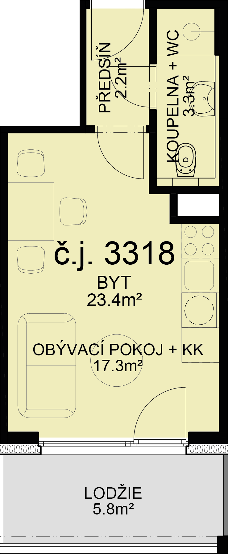 | Prodáno | 3318 | 1+kk | 3 | 23,37 m² | Informace není dostupná | Byt |