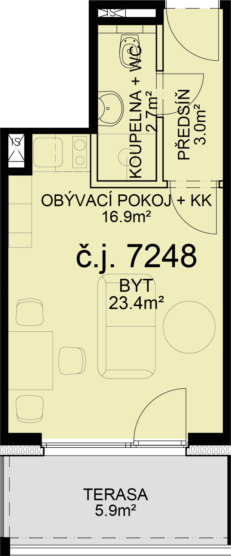 | Prodáno | 7248 | 1+kk | 7 | 23,39 m² | Informace není dostupná | Byt |