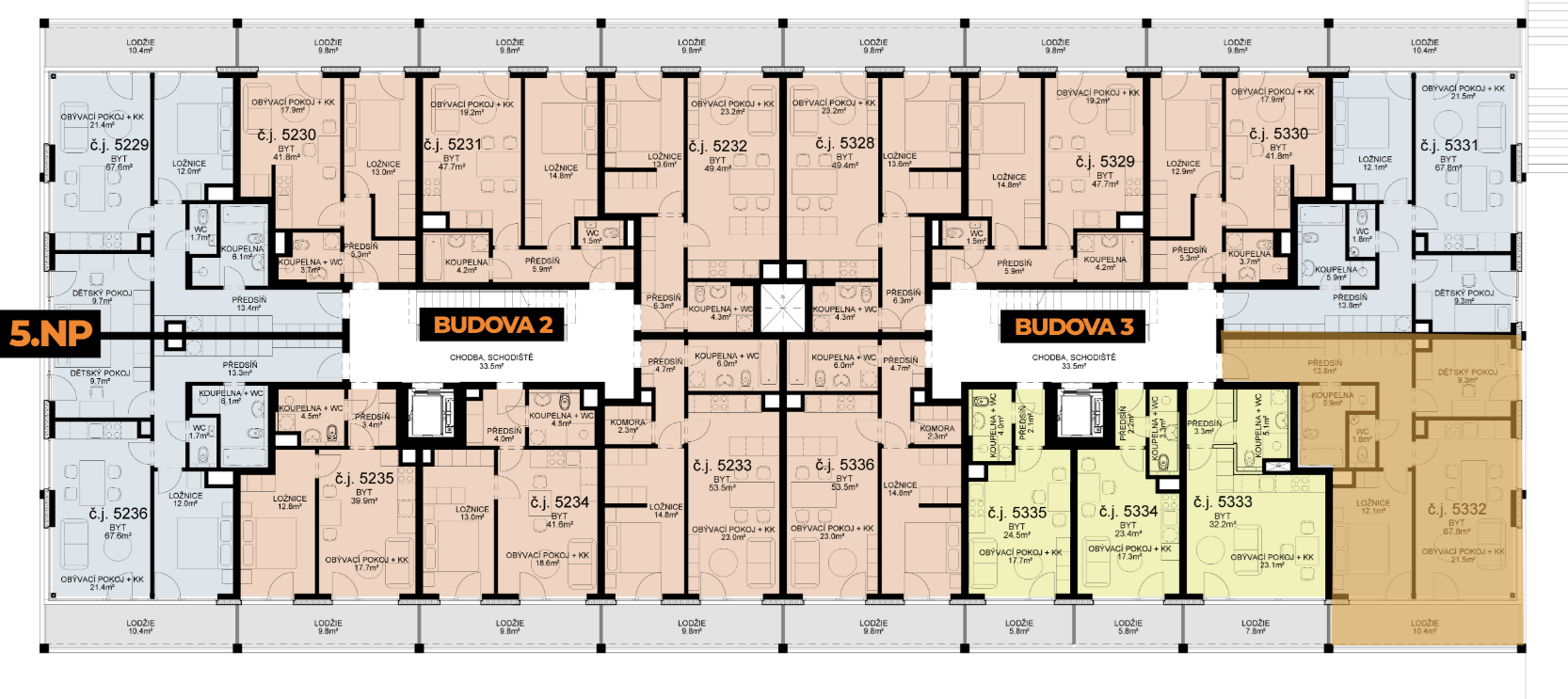 Volný | 5332 | 3+kk | 5 | 67,76 m² | 9 016 094 Kč | Byt |